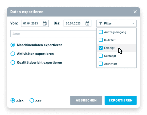Calculate with real data! Send the real booked times from the EVOMECS MES system back to your ERP system.